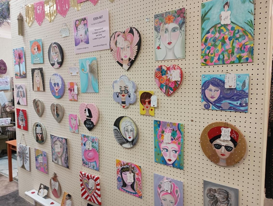 My art (EDEN ART) is currently for sale at the Double B Vintage Market, 420 County Road 409 in Jonesboro, AR.  (Take S. Culberhouse - S. Culberhouse changes to CR 409 once you cross over Lawson Road.)