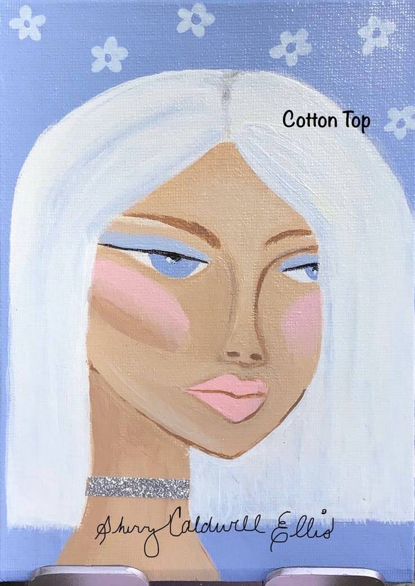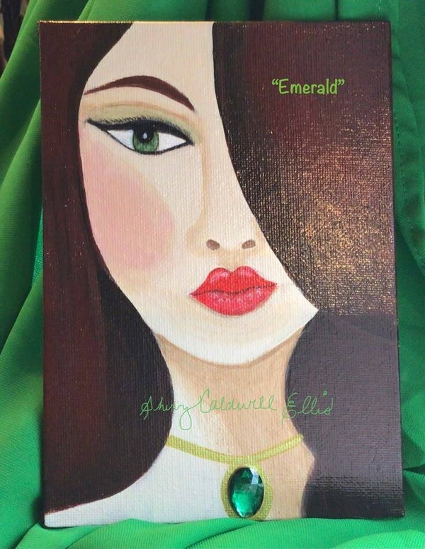 Acrylic on 5 x 7 inch canvas panels. All artwork is coated with a semi-gloss sealant and has a hanger. Some pieces have gemstone embellishments. Prices vary. My signature across the photo will not appear on the actual art.